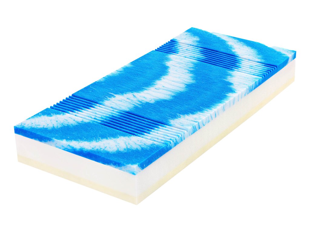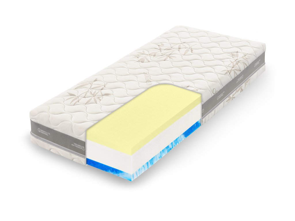 - Paměťová pěna (strana hard) Při kontaktu s lidským tělem optimalizuje svoji tuhost podle absorbovaného tepla, což zaručuje optimální přizpůsobení matrace při všech režimech spánku.