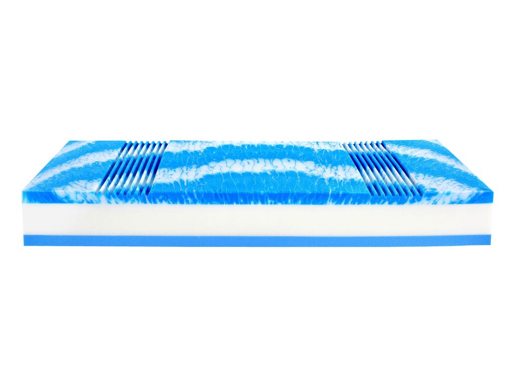 - Geltouch Hybridní pěna (strana soft) Spojuje hebkost latexu s dokonalou distribucí tlaku gelových matrací. Vysoce prodyšná, napomáhá správné termoregulaci.