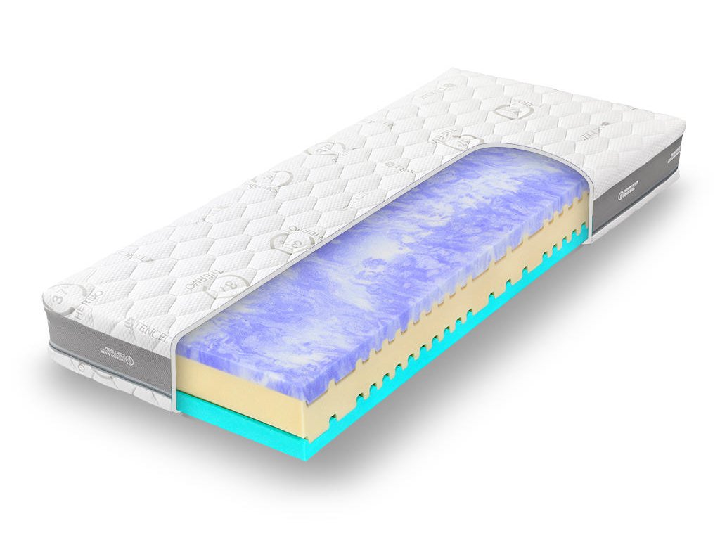 - Nelepené jádro s provětrávacími kanálky pro maximální hygienu a omezení pocení. Pružnost a tuhost. Jednotlivé strany matrace mají velký tuhostní rozdíl.