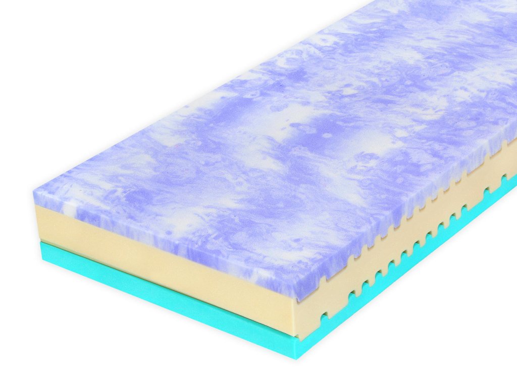 - Fialová hybridní pěna S-GT snoubí hebkost latexu s dokonalou distribucí tlaku gelových matrací (Gel-Touch).