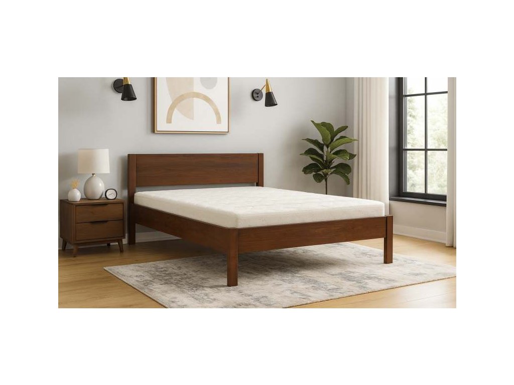 Jednoduchá, ale velmi pevná masivní postel z průběžného bukového dřeva.